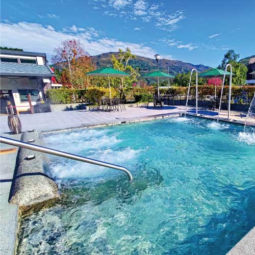 設有5種特色功能皆具的湯池及1種藥草浴池,能隨時挑選符合自身需求的適宜溫度,享受豐富的泡湯體驗。
